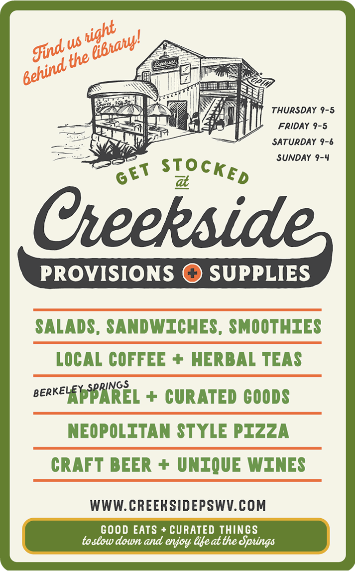 Located in the center of historic Berkeley Springs, Berkeley Springs State Park is home to a mineral spa that has been in use since colonial times. The park is renowned for its warm spring water, which flows at a constant temperature of 74.3 degrees. The park’s Old Roman and Main bathhouses offer a wide selection of spa services, including massages, saunas, baths and showers. The park has been or gracious hosts for the past four years of the festival after we outgrew the courtyward at MAC.